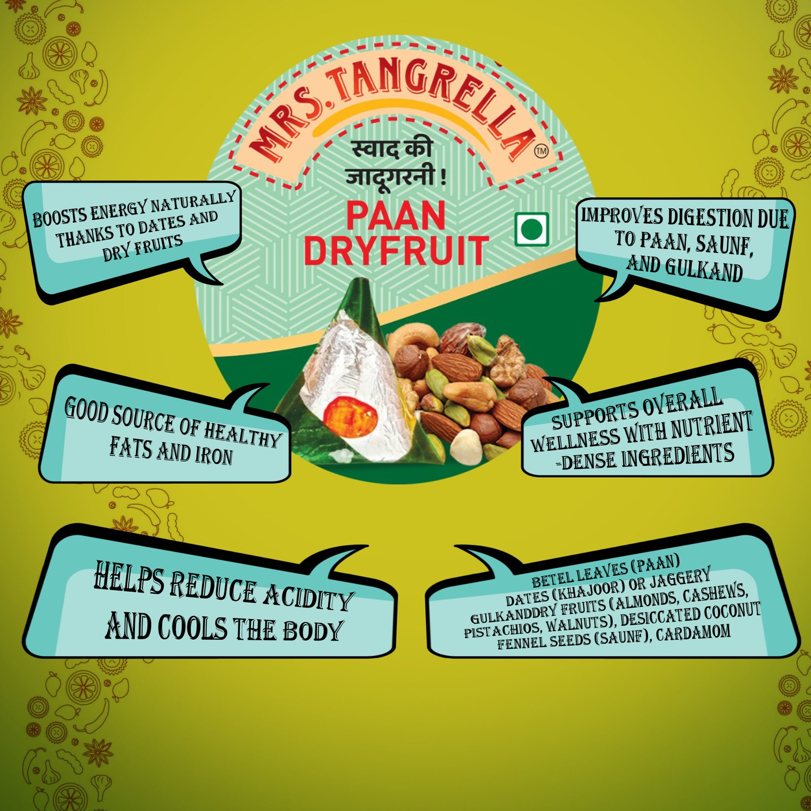 ✅ Made with a flavourful blend of fresh paan and high-quality dry fruits
